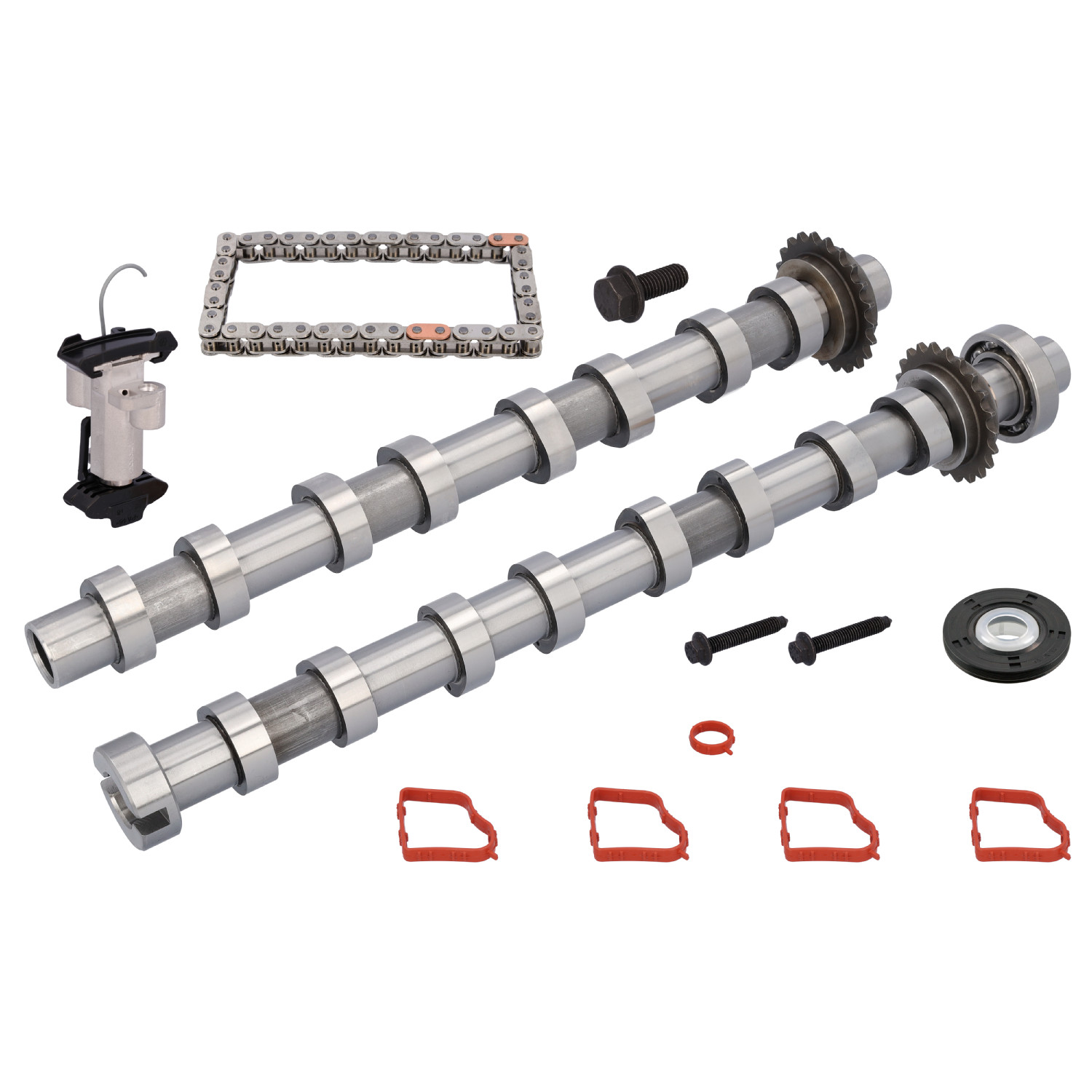 V oblasti řetězového pohonu nabízí febi kromě jednotlivých komponentů také širokou škálu sad řídicích řetězů. Ty obsahují všechny jednotlivé díly potřebné pro odbornou výměnu. Kromě rozvodových řetězů sem patří také napínáky řetězů, napínací lišty, kluzné lišty a vodicí lišty.